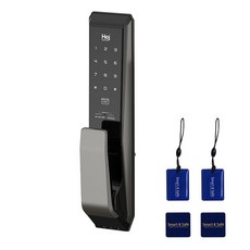 헤이홈 스마트 푸시풀 손잡이 있음 도어락은 스마트폰 앱으로 잠금·해제 제어가 가능하고 자동 잠금, 비밀번호 및 카드키 입력으로 출입할 수 있는 IoT 현관용 디지털 도어락 제품이며 푸시풀 방식 손잡이로 손쉽게 문을 여닫을 수 있다