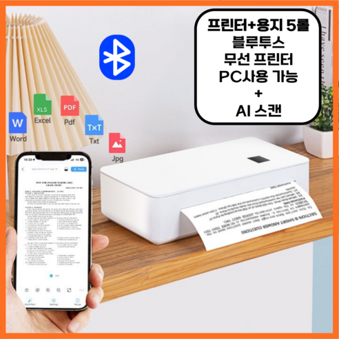 블루투스 무선 연결로 스마트폰과 연동되며, 200/300DPI 고해상도로 A4 용지와 라벨, 사진을 선명하게 출력할 수 있는 휴대용 미니 포토프린터로 내장 1롤 포함되어 바로 사용 가능합니다.