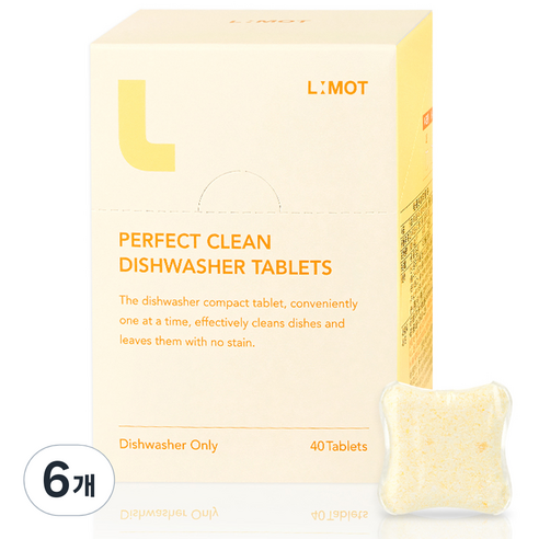 엘모트 퍼펙트 클린 식기세척기 타블렛 세제는 강력한 세정력으로 기름때와 음식물 잔여물을 깨끗하게 제거하며, 1회용 타블렛 형태로 사용이 편리하고, 40개입 포장으로 장기간 사용 가능하며, 다양한 식기 재질에도 안전하게 사용할 수 있고, 물에 잘 녹아 잔여물 없이 세척이 가능하며, 6개 세트로 경제적이다.